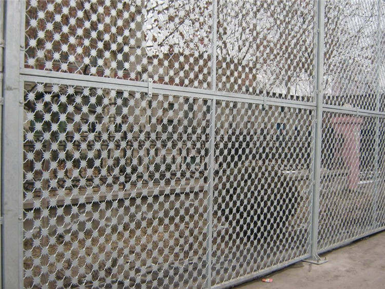 監(jiān)獄防攀爬護欄網(wǎng)也被稱為太陽花刺片監(jiān)獄護欄網(wǎng),它的立柱由Y形鍍鋅鋼管制成,鋼管的壁厚為150 * 150 * 8mm,網(wǎng)架的尺寸為60 * 60 * 2.5m。此外,監(jiān)獄防攀爬護欄網(wǎng)的Y形柱還配備了不銹鋼刀片刺網(wǎng),并對其表面進行了噴涂。常見的是深綠色噴涂和銀灰色噴涂,看起來高端,簡單而美麗,并且可以起到防腐防銹的作用,還可以起到裝飾環(huán)境的作用。下面就來介紹一下監(jiān)獄防攀爬護欄網(wǎng)的特點以及結(jié)構(gòu)規(guī)格。