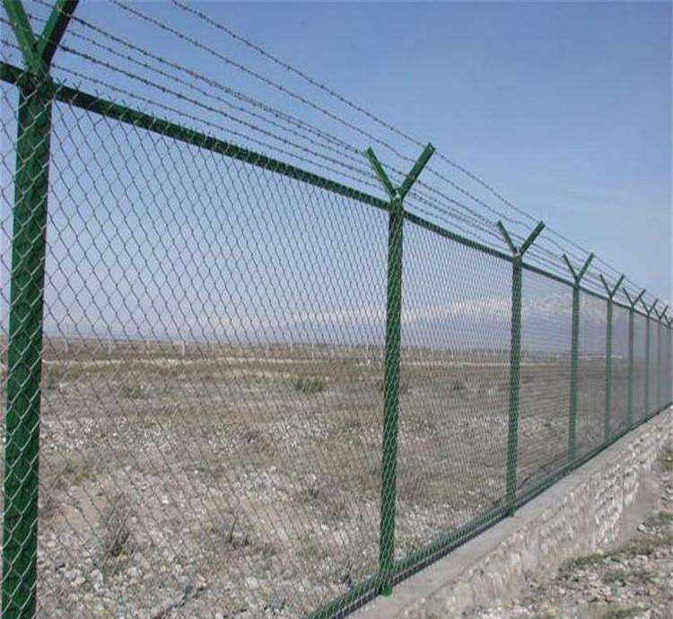 機場護欄網(wǎng)又稱作“Y型安全防御護網(wǎng)”,由Y型支架立拄,加強型焊接網(wǎng),安全防盜連接件和熱鍍鋅刀片刺網(wǎng)組成,是強度和安全防御性級別很高的圍界護欄網(wǎng)產(chǎn)品。采用5.0mm高強度低碳鋼絲焊接,網(wǎng)孔:50mmX100mm,50mmX200mm網(wǎng)片中帶有V型加強筋,可大大增強圍網(wǎng)的抗沖擊力,立柱為60X60的矩形鋼,頂端焊有V型之架,或者采用70mmX100mm的掛式。注:如果在機場護欄網(wǎng)頂部加裝刀片刺絲、刀片刺繩后又很好的增強了安全防護性能。